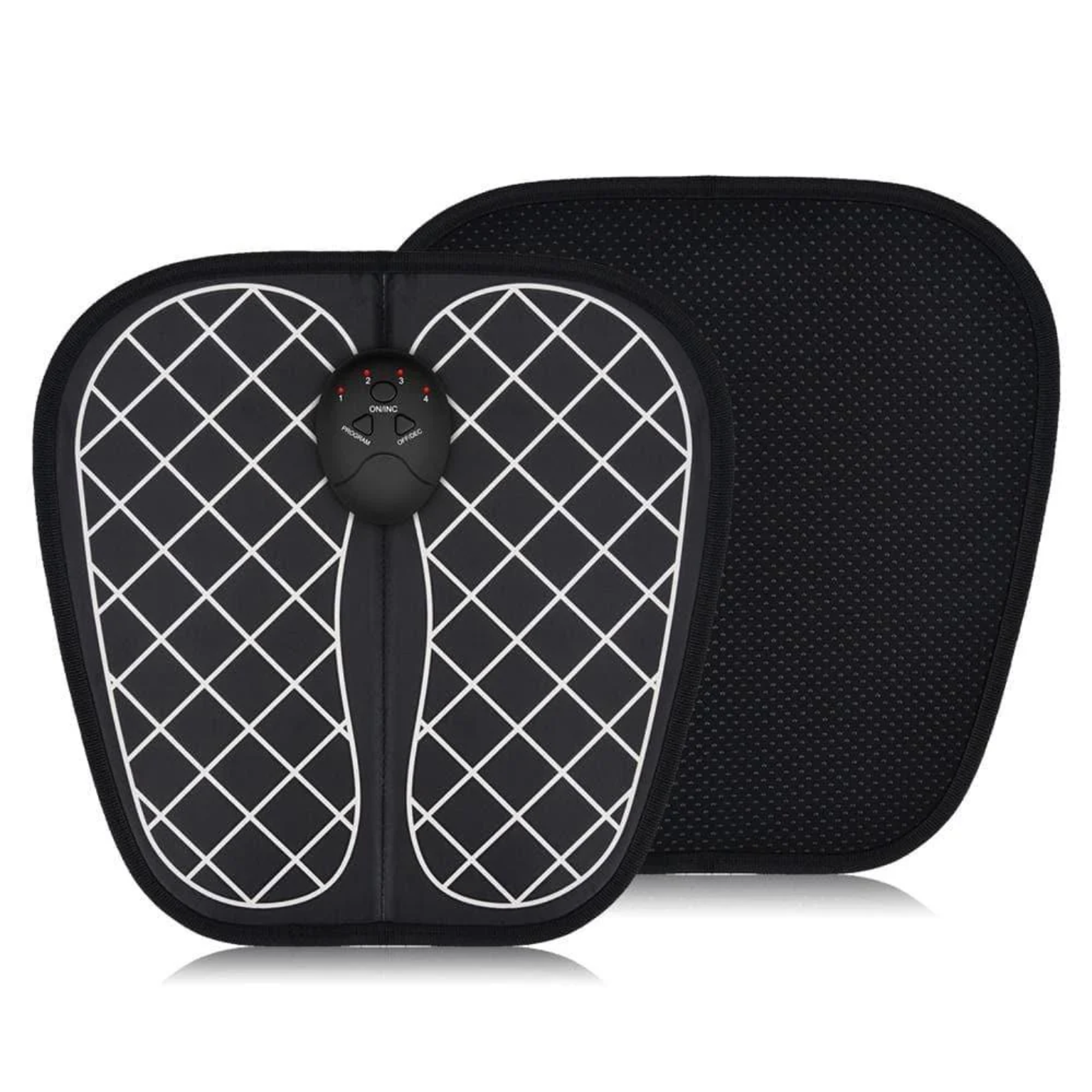 EMS (Electrical Muscle Stimulation) sends mild electrical pulses that cause foot muscles to contract and relax. Paired with vibration, this enhances circulation and helps ease stiffness. The pad surface touches your feet, so you feel the treatment across the full sole.